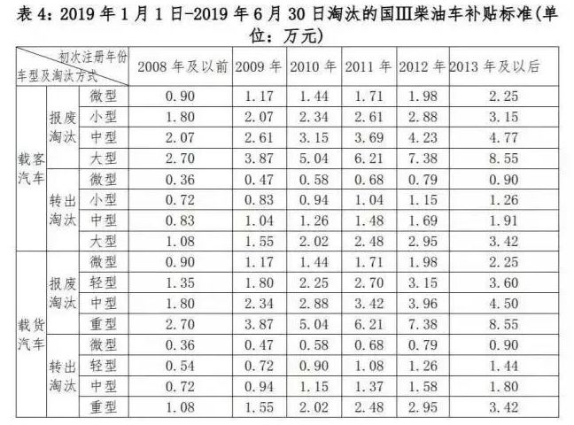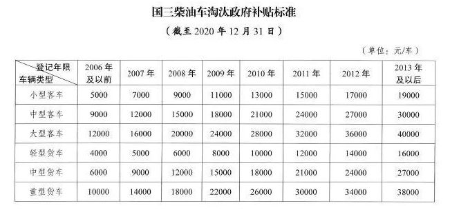 根据淘汰车辆的车型、使用年限给予差别化政府补贴。