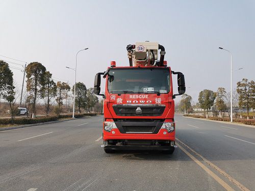 江特牌JP32举高喷射消防车是选用中国重汽T系列豪沃消防车底盘,原厂单排双开门驾驶室,可载含驾驶员在内的乘员2人,驾乘舒适轻便;集水罐车、泡沫车、高喷车三者功能与一身,具有高层灭火、火场监控、快速作战等国内先进水平的高性能多功能消防车。该车采用电液比例及下车集中控制技术,是全液压驱动、伸缩加折叠臂式消防车;同时该车自带7吨水罐及2吨泡沫罐,可在距离水源较远的位置完成消防作业。该车综合应用新技术、新工艺、新材料并结合自身技术优势,丰富高喷车的功能配置,提高了高喷车的单车作战能力。